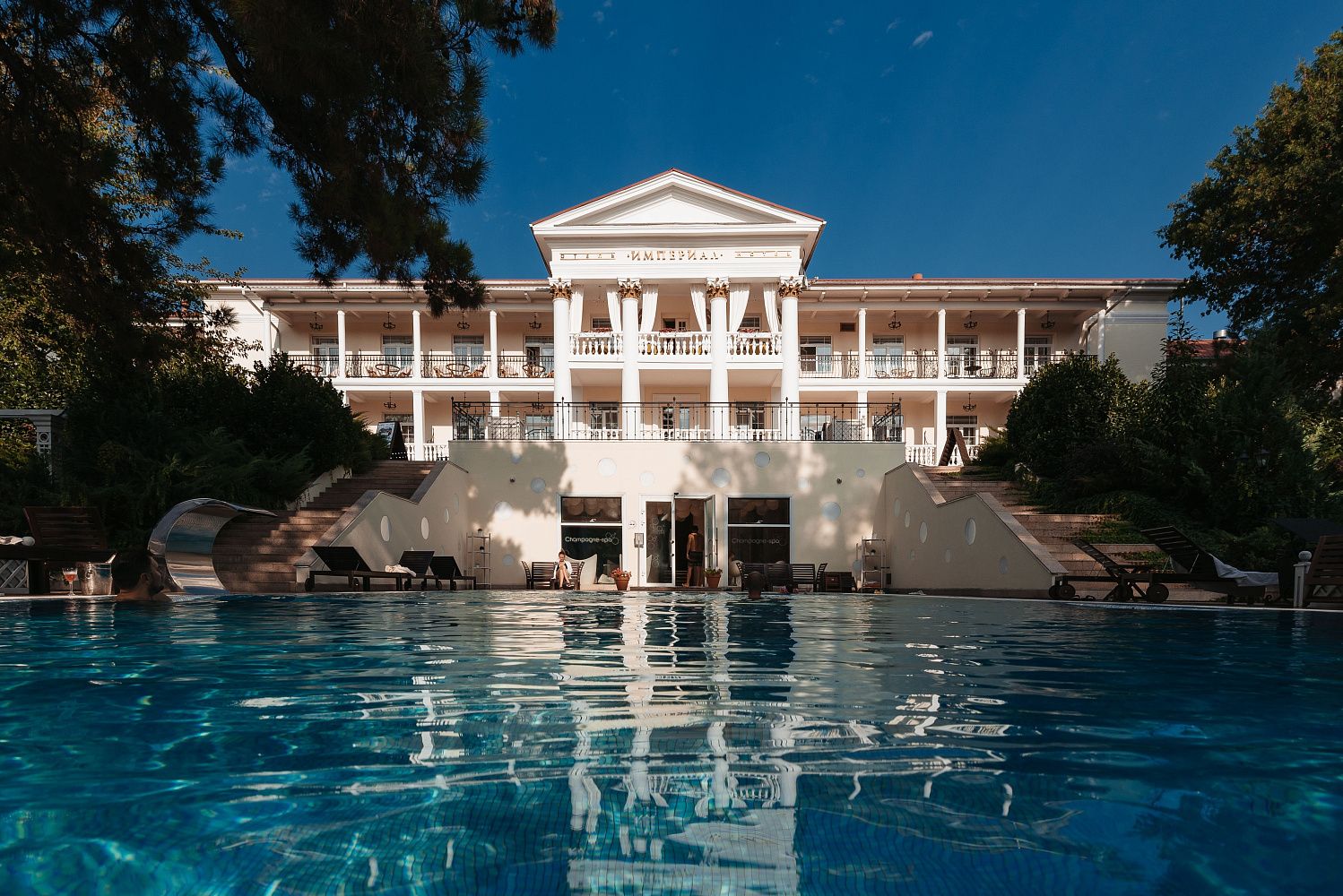 Бутик-отель «Империал»&Champagne-spa – это не просто место для отдыха, а историческое здание, построенное в 1959 году в стиле позднего ампира. Отель предлагает гостям атмосферу французского шарма, подогреваемый бассейн и спа-центр с широким спектром процедур.