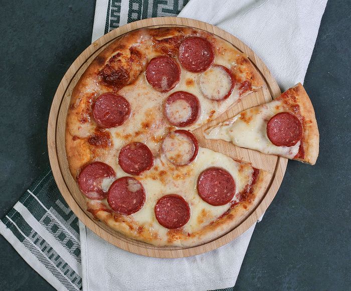 - Пицца с колбасками.